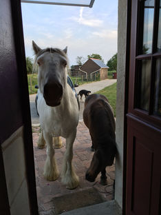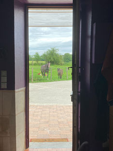 Côté chevaux, 2 grands box ouverts, paddocks, pré, sellerie et douche.