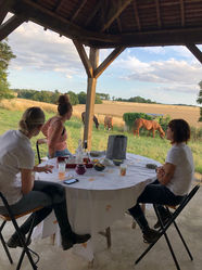 Pause à mi-chemin, apéro champêtre et convivial, retour au coucher du soleil